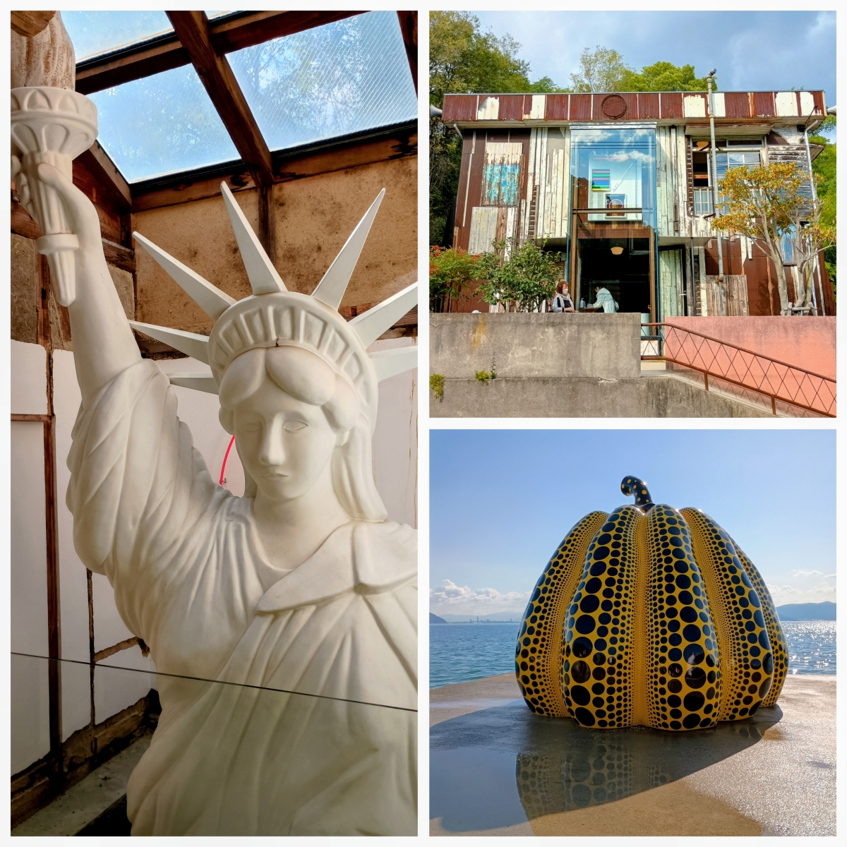 ちなみに画像にも載せている有名な草間彌生のかぼちゃ。これ、一度台風で海に流されて新しく再建されたものです。