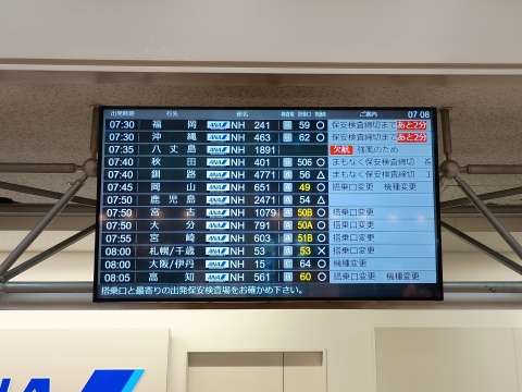 青ヶ島に行けたところで、ずっと天気悪そうだから帰るのはいつになるかな、なんて考えていたところ、7:00頃に八丈島がどうのという上品な声のアナウンスが聞こえた気がした。スマホを見るとアプリやメールなどから通知がバンバン来てる。何事かと思って開いてみると⋯八丈島行き欠航のお知らせ _| ̄|○ il||liまさか八丈島にすら行けないなんて夢にも思わなかった。日本で一番行き帰りが困難な島へのチャレンジ、まさかの本州すら出れずに終了。一瞬、何が起きたのか理解できなかった。まさにポルナレフ状態。空港で返金手続きを済ませ、帰りをどうするか考えるも、昼のバスはすでに満席。新幹線で帰ってもよかったけど、せっかくここまで来たんだし、適当にぶらぶらして夜行バスで帰ることにした。しかしながらどこまでもツイてない今日の私、東京では山手線が止まっているとのこと。仕方ないので横浜観光に切り替えることにした。念願の青ヶ島へ(番外編)に続く